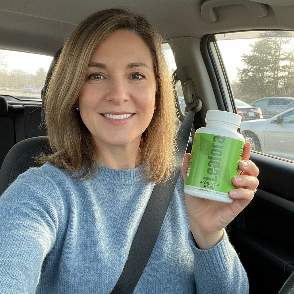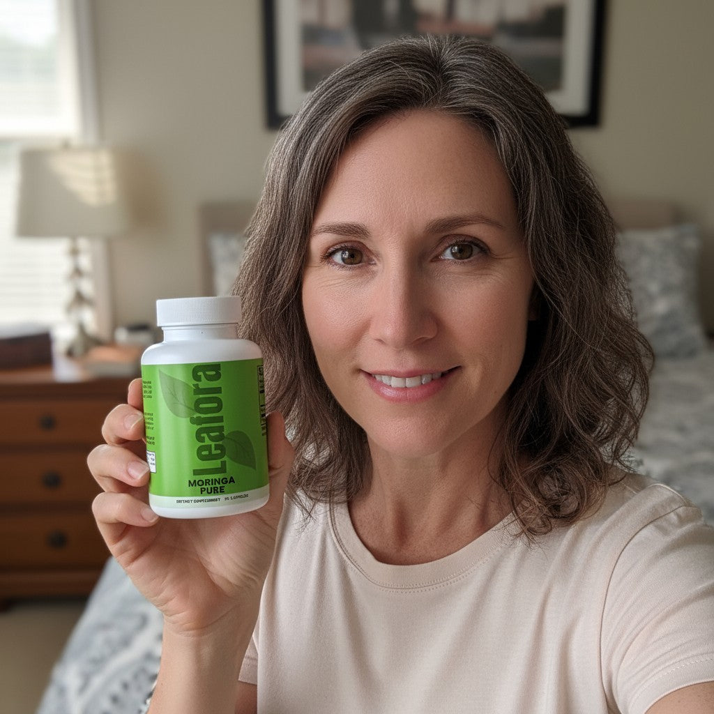Leafora Moringa Pure is your natural ally during life’s transitions. Specially formulated to support women in their 40s and 50s, our Moringa supplement helps restore balance to your body and mind. Packed with powerful antioxidants and essential nutrients, it helps reduce fatigue, ease joint discomfort, and improve mood, all while supporting hormonal balance naturally. Embrace each day with more energy, better sleep, and a sense of calm. Feel like yourself again with Moringa Pure.